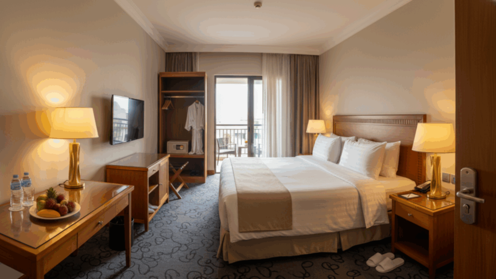 Di dalam suite ini, Anda akan menemukan fasilitas lengkap seperti bathub/jacuzzi pribadi, TV layar datar, AC dengan pengaturan suhu mandiri, mini bar, dan meja kerja sederhana. Setiap detail dirancang untuk membuat Anda merasa istimewa, sehingga Penthouse Suite sangat cocok untuk honeymoon, perayaan momen spesial, atau sekadar menikmati pengalaman menginap terbaik di Hotel Macantoto.